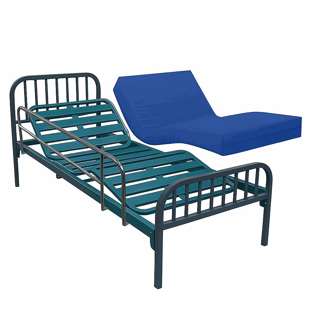 Camas ortopédicas, mesas de apoyo y barras trapecio que garantizan confort y asistencia segura.